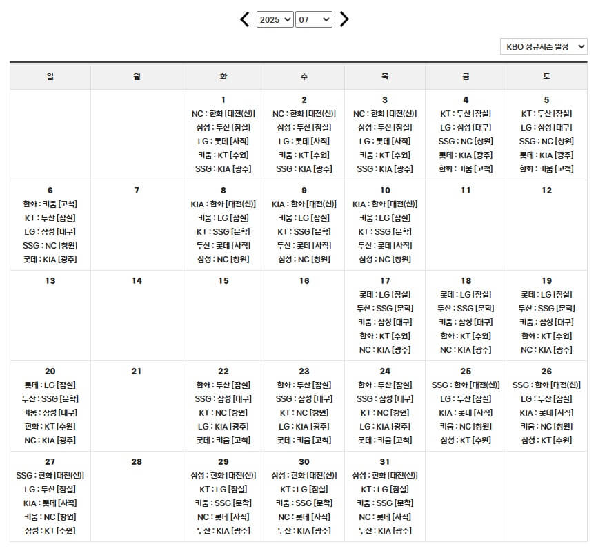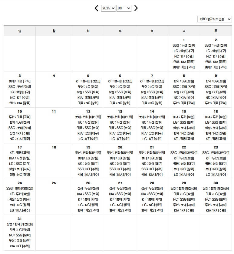 - 8월: 여름 방학 기간 중 특별 이벤트 경기